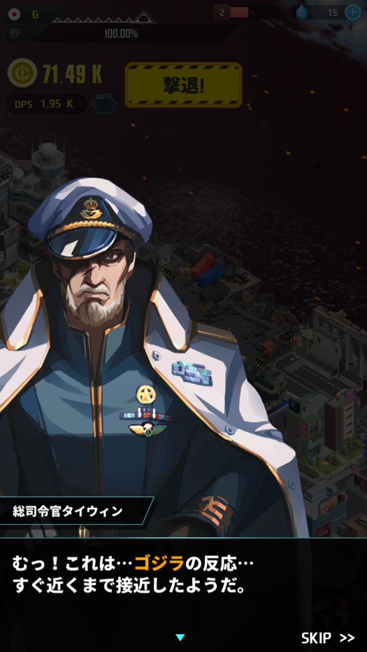 「ゴジラ 列島震撼」のような本格的なシミュレーションゲームではないですが、片手間に遊べるスマホゲーですね。
