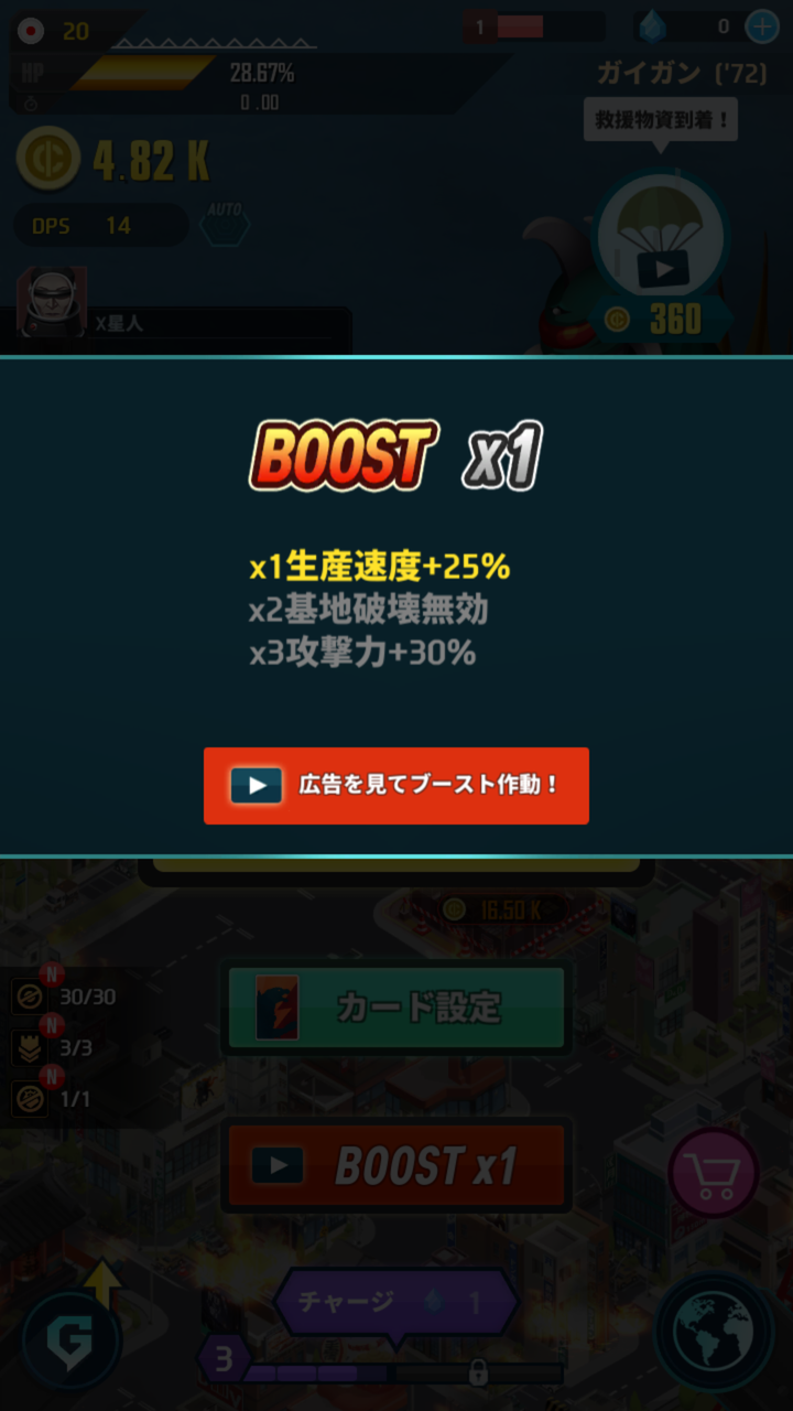 それでも戦力が足りない時には広告を見てブーストアップ!