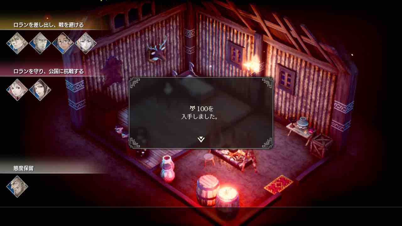 これが「タクティクスオウガ」ならばヴァイスやレオナールが部隊から離脱しているところですが、今作では反対派の2名は投票結果を納得して受け入れてくれます。