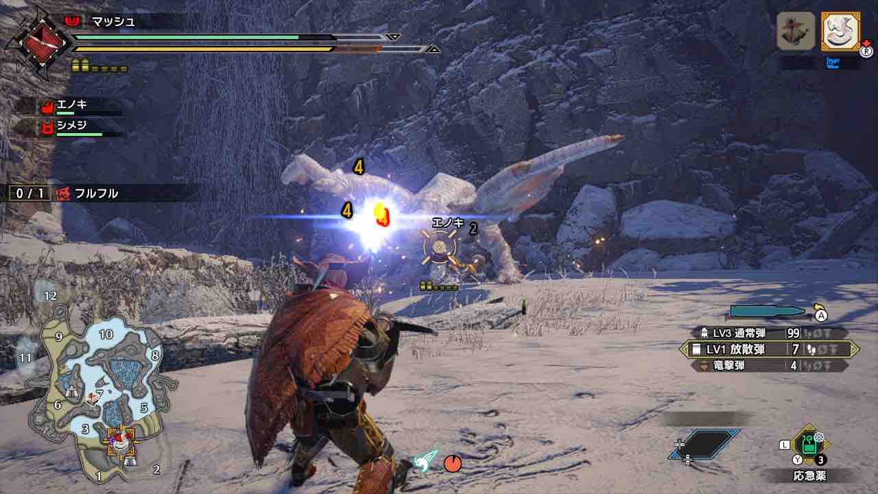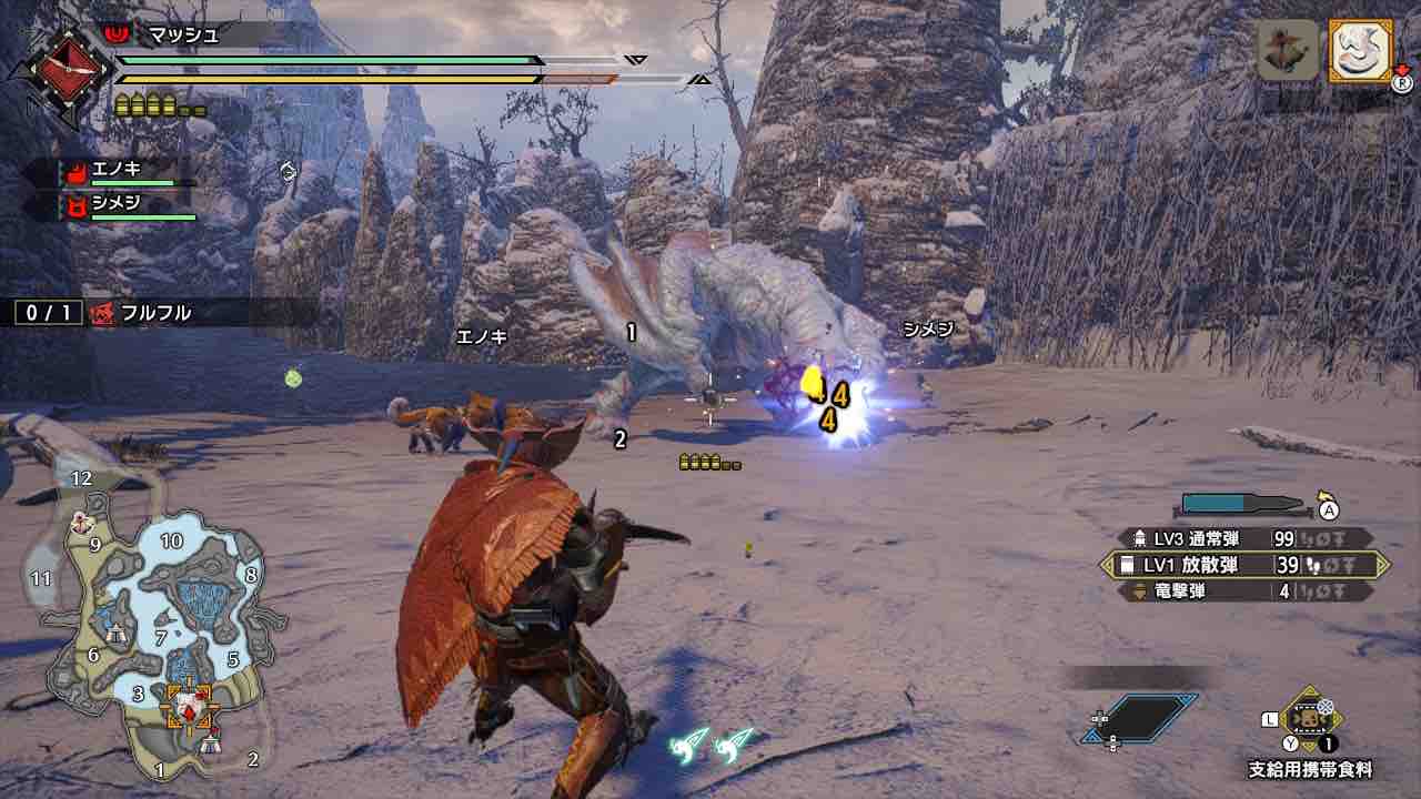 今作、というか前作「ワールド」から攻撃をヒットさせたらダメージ値が表示されるようになってるのですが、貫通弾や散弾をヒットさせてダメージ値が立て続けに表示されるのがとても気持ちいい。