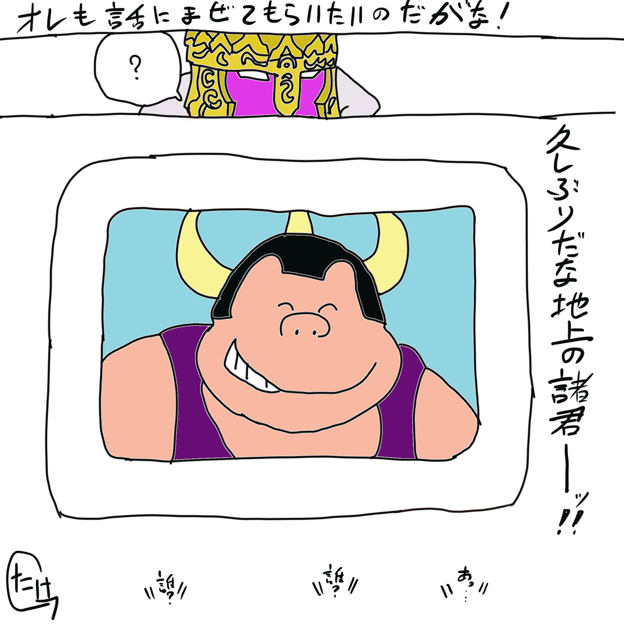 ジェシー・メイビアに勝ってハワイ超人チャンプにはなってますが、先の戦いでは目の前のモニター越しにいるザ・マンが扮していたストロング・ザ・武道にワンパンされちゃってますから。