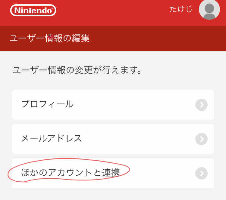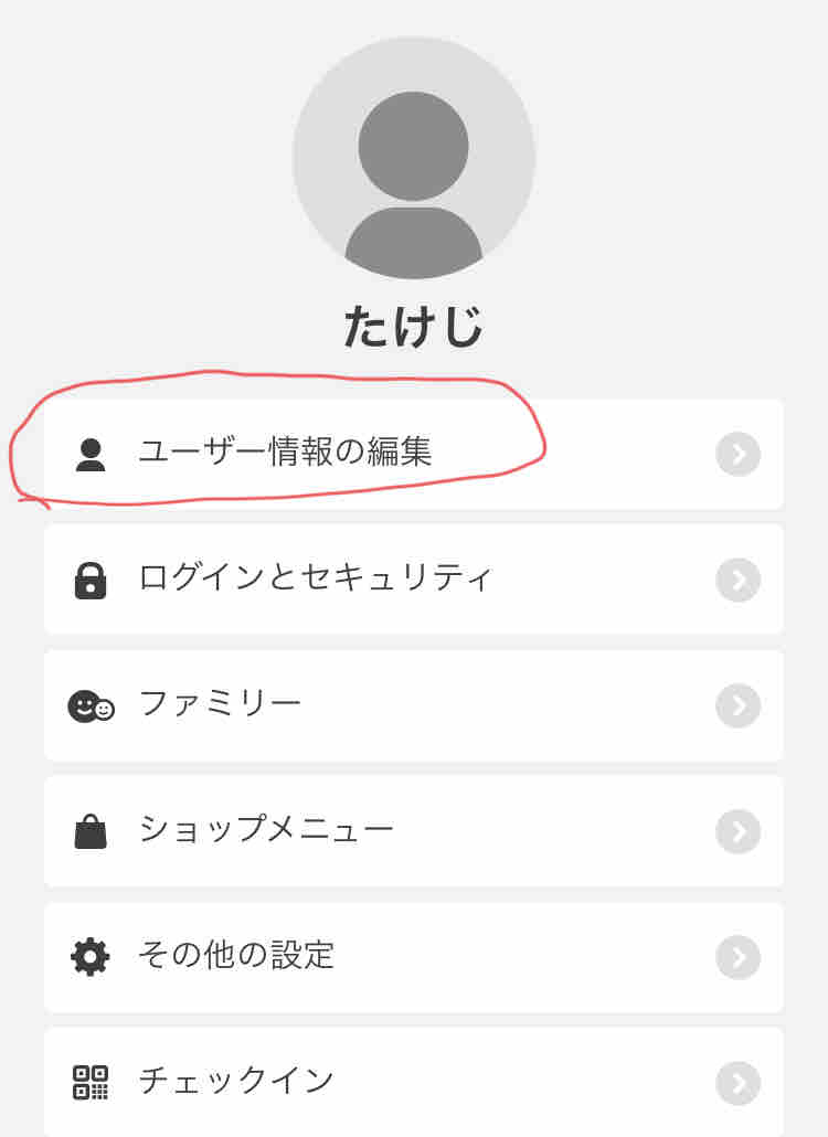 そのアカウント設定画面から「ユーザー情報の編集」を選択。