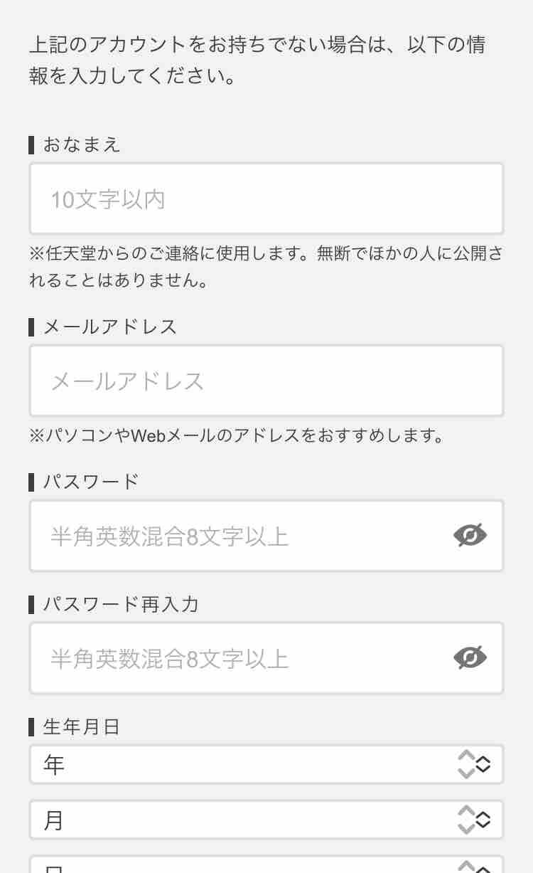 逆に言えば、Switchを持ってなくてもニンテンドーアカウントを作る事は出来るということです。