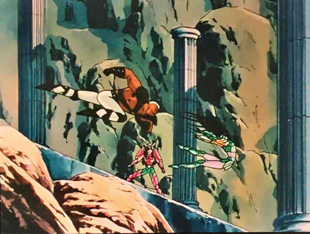 星矢と紫龍が蠍座のミロと相対し、やりあっているシーンではどうにも