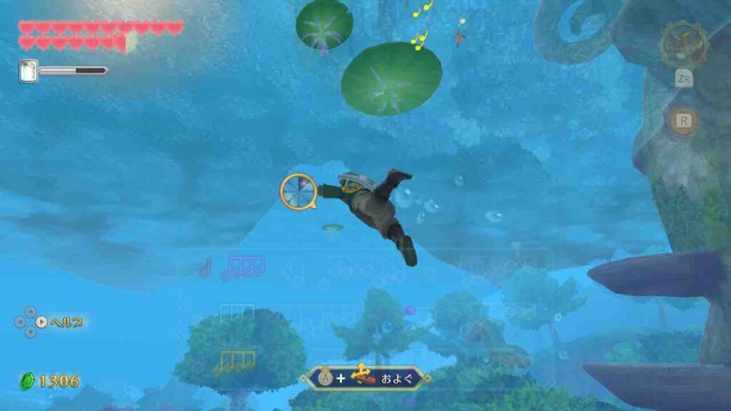 特に、ロフトバードに乗っての空中での飛行操作、そしてゲーム途中で可能になる、水に潜っての水中での操作はかなり厳しいものがありました。